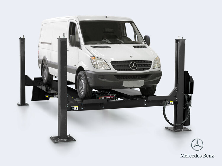 La plataforma elevadora de alineación 4PMB para Mercedes-Benz es la única plataforma aprobada para Sprinter. Tiene capacidad para soportar vehículos de 8 164 kg (18 000 lb), un ancho de pista de 26 pulgadas y tecnología PowerSlide® .