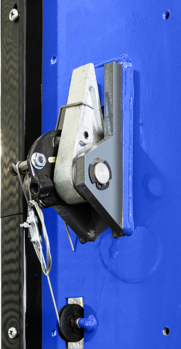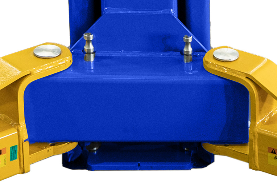 Montado en la parte trasera de cada columna, el elevador está equipado con dos mecanismos de bloqueo de seguridad. Los trinquetes de bloqueo se acoplan automáticamente a la escalera de bloqueo del carro cuando se eleva. Ambos bloqueos se desacoplan para bajar mediante la palanca de liberación de bloqueo única situada en la columna de control.