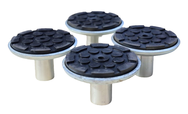 El PRO9D-EVO está estandarizado con 4 adaptadores de perfil bajo, de 2 etapas y giratorios redondos, con altura mínima de la almohadilla de 90 mm. Están diseñados para su uso con vehículos eléctricos de batería y de carrocería única. La almohadilla redonda de goma garantiza que no haya contacto entre metales y protege la parte inferior de la carrocería.