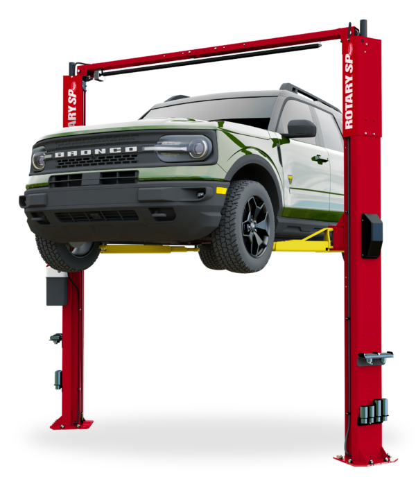 Los elevadores de la serie SPOA de Rotary están diseñados para vehículos de pasajeros y ligeros. La rotación de las columnas 30°, combinada con brazos delanteros más cortos y traseros más largos, desplaza el centro de gravedad del vehículo detrás de la estructura, permitiendo que las puertas se abran completamente sin obstrucciones en la columna.