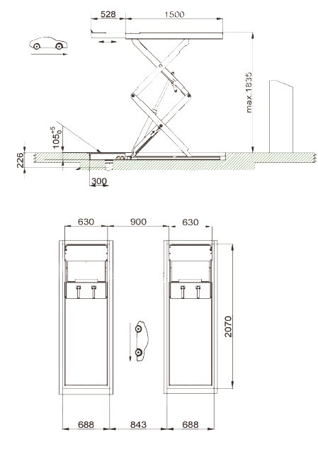 - Altura de elevación de 1835 mm que crea espacio de trabajo incluso para los técnicos más altos.
