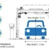Dimensiones máximas del coche: 5,5 m (largo) x 2,4 m (ancho) x 2,1 m (alto)