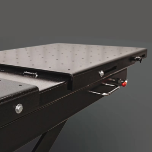 La plataforma se extiende 8″ adicionales y puede desplazarse por secciones, evitando mover toda la mesa para cargas grandes. Esto facilita desmontaje y montaje de componentes.