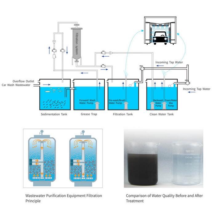 El sistema de tratamiento de recuperación de agua de lavado de vehículos M-SH60 es una solución avanzada diseñada para el reciclaje eficiente de aguas residuales de lavado de vehículos. Mediante una combinación de filtración multicapa con arena de cuarzo y adsorción con carbón activado, este sistema elimina eficazmente los contaminantes, garantizando el cumplimiento de las normas ambientales. Con un tamaño compacto y un funcionamiento totalmente automatizado, es ideal para instalaciones de lavado de vehículos que buscan una gestión del agua sostenible y rentable.