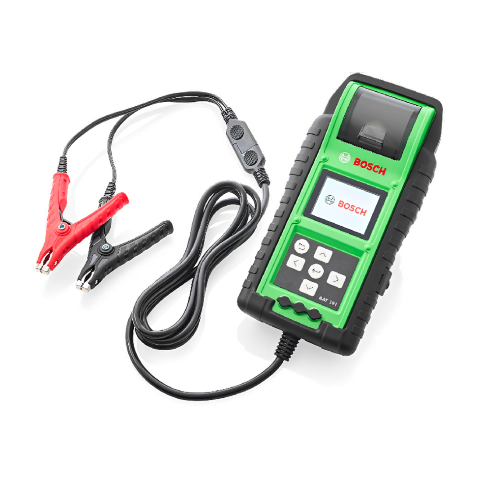 Con el comprobador de baterías BAT 191 apto para Connected Repair se garantiza siempre un uso sencillo y rápido en el proceso de diagnóstico. Es ideal para probar baterías de arranque de 6 V, 12 V y sistemas de 24 V, así como baterías de plomo-ácido, EFB, gel y AGM (planas y en espiral), LiFePO4 y baterías de motocicletas Harley-Davidson. Se utiliza un algoritmo de prueba optimizado para probar baterías nuevas, sin usar y de stock, en el que se pueden almacenar hasta 100 resultados de pruebas. El trabajo en el taller es especialmente flexible gracias al peso significativamente reducido, la impresora térmica integrada y el cable reemplazable de 3 m de longitud del BAT 191.