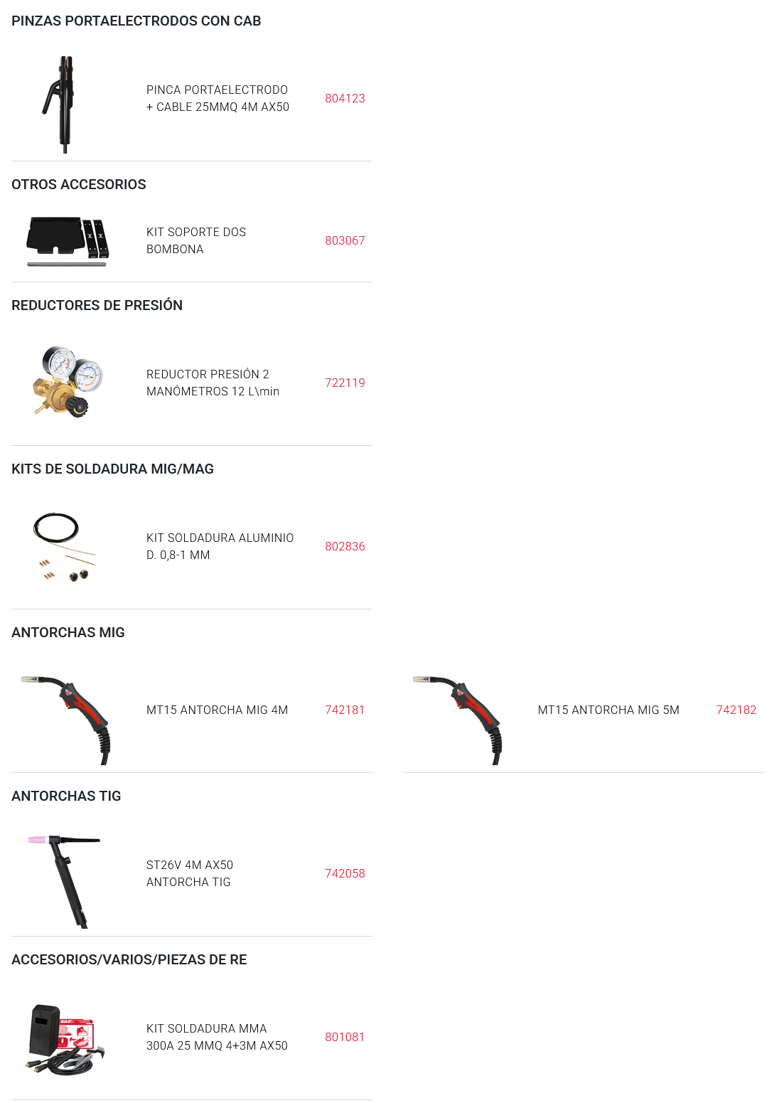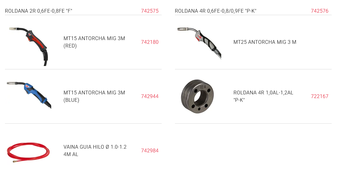 Equipada con 3 sopletes MIG-MAG (dos MT15 y una MT25 ), cable y pinza de masa.