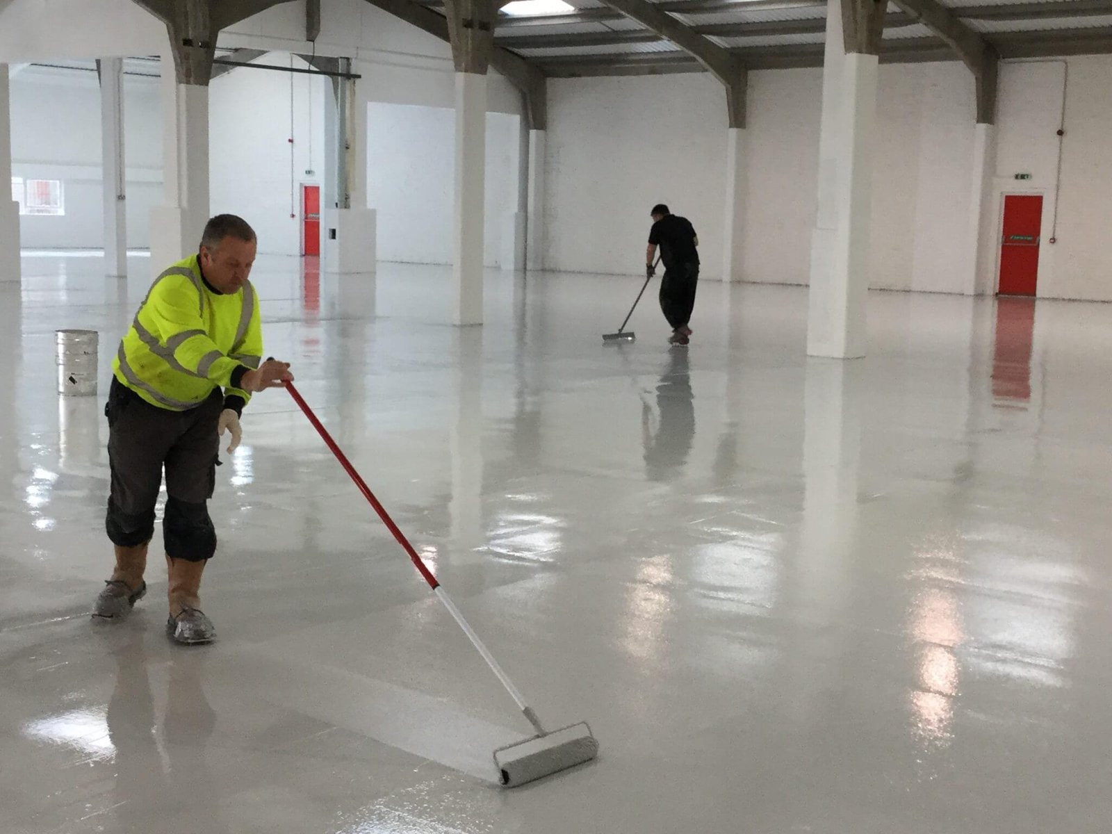 Se procede a una limpieza exhaustiva del piso con agua, detergentes, desengrasantes y agentes especiales para la remoción de suciedad, grasas y aceites lubricantes. Proceso fundamental para la posterior aplicación de productos químicos que se emplearán en las etapas posteriores. Posterior a la limpieza se realiza una evaluación del estado de la nivelación y rugosidad del piso, por lo cual se aplicarán productos tales como morteros químicos, los cuales ayudan a eliminar las imperfecciones, rugosidades, grietas y obtener una superficie nivelada. Finalmente, la preparación culmina, con un proceso de pulido industrial del piso, dejando la superficie suave y apta para la aplicación de productos químicos en las etapas posteriores.